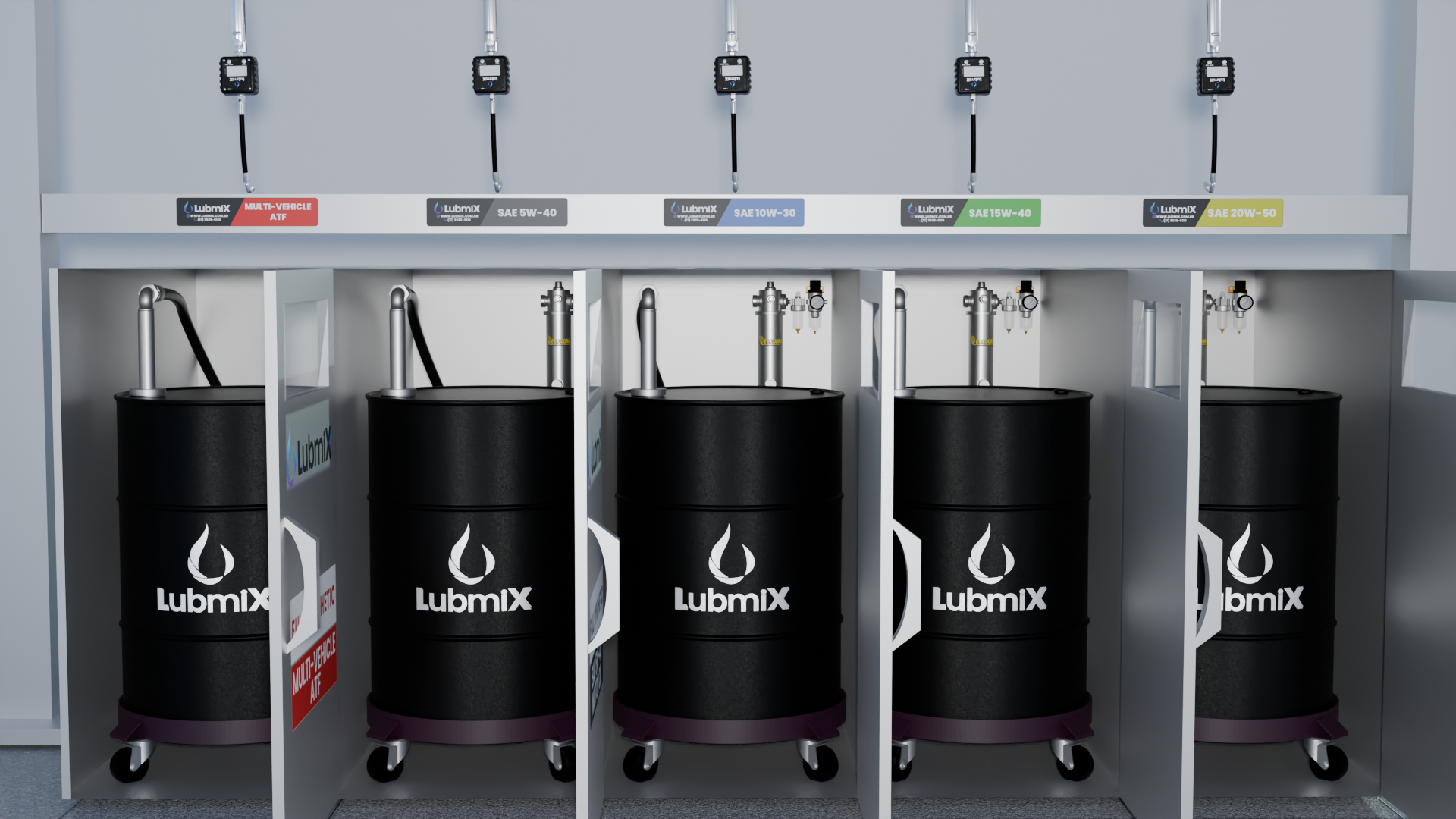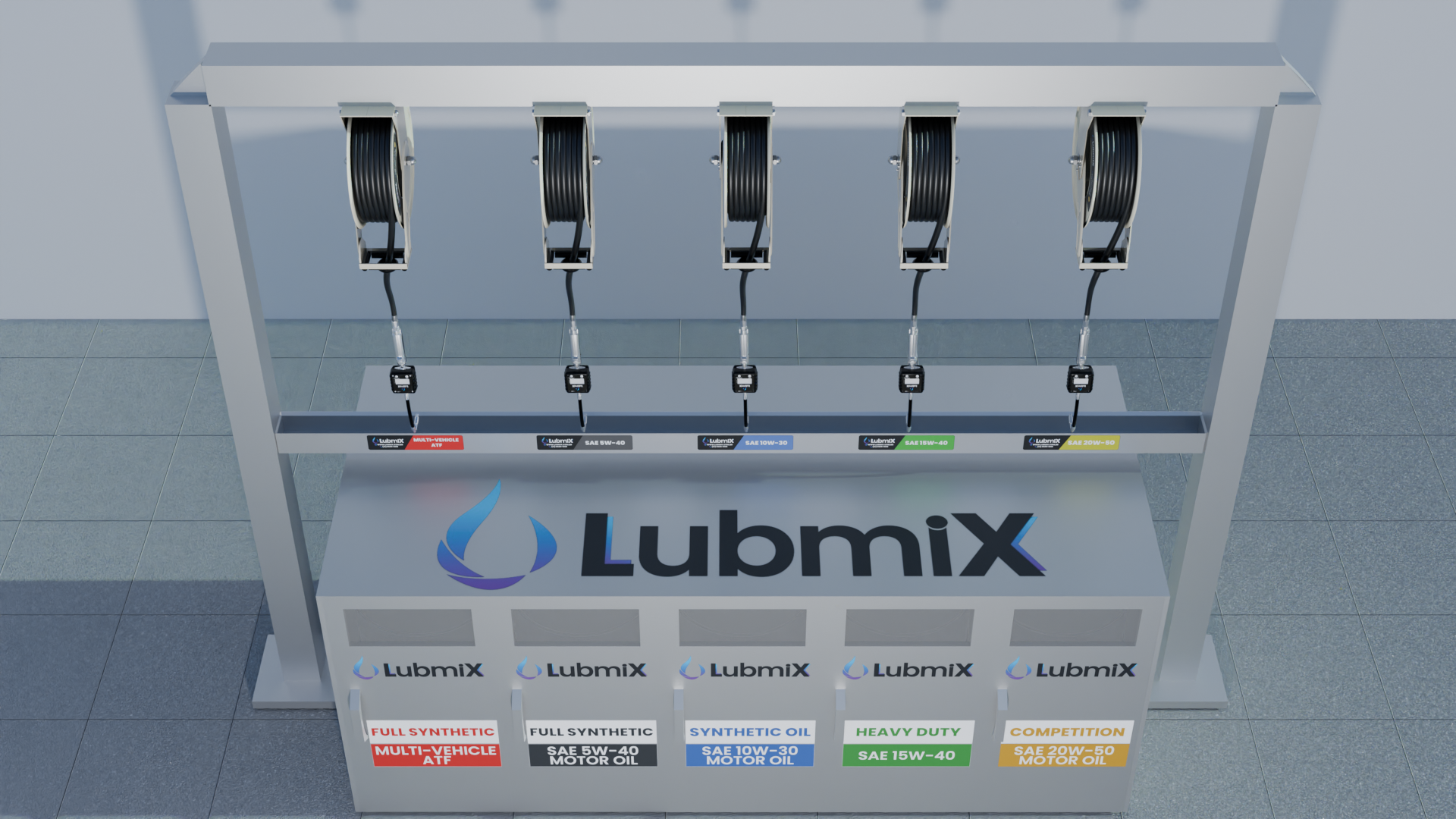 A Lubmix desenvolveu um Rack de Lubrificação Automotivo com 5 bicos, projetado para otimizar as operações de troca e abastecimento de óleo em oficinas mecânicas, centros automotivos, concessionárias e frotas. O sistema foi desenvolvido para proporcionar maior organização, segurança e eficiência na gestão de lubrificantes, centralizando o armazenamento e a distribuição dos fluidos em um único equipamento robusto e de fácil operação.